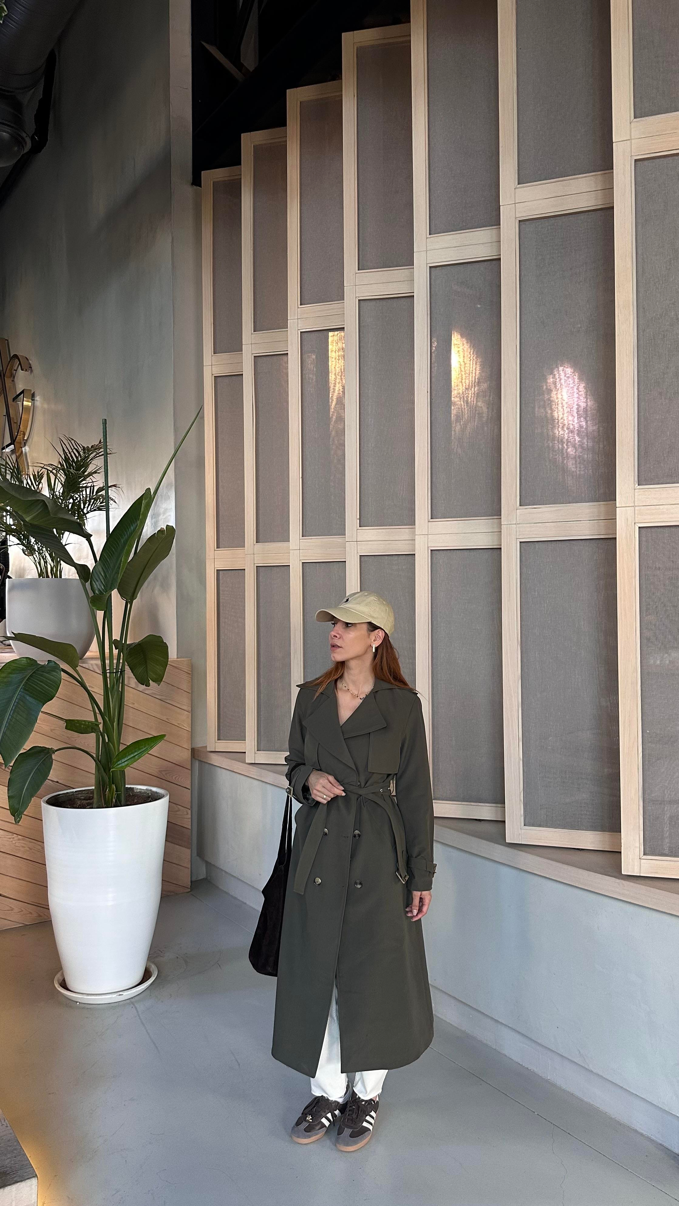 Haki Su Geçirmez Uzun Astarlı Trençkot (Trençbonn)