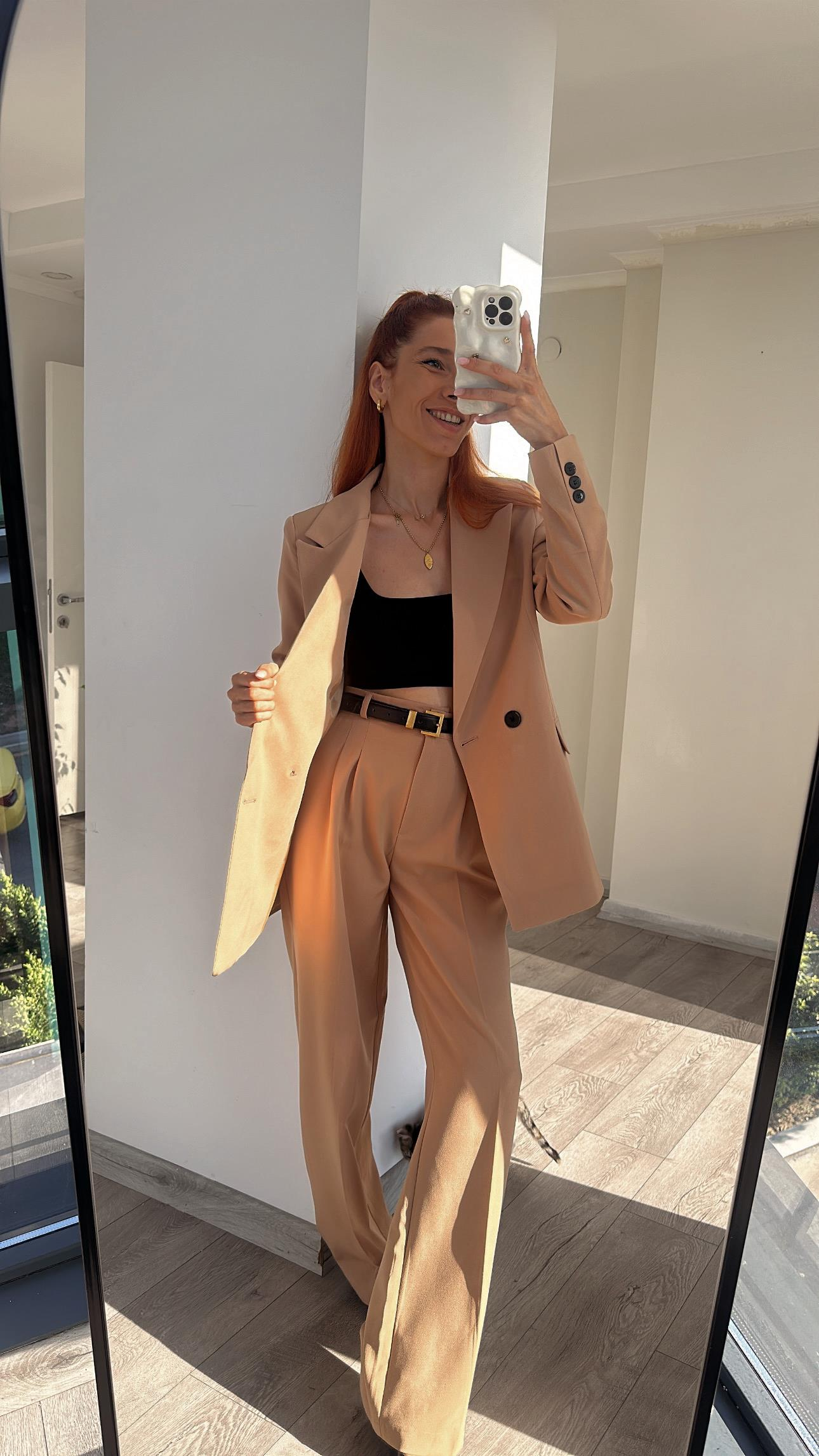 NUDE PİLE DETAY PALAZZO PANTOLON  OVERSİZE  ASTARLI CEKET TAKIM ELBİSE