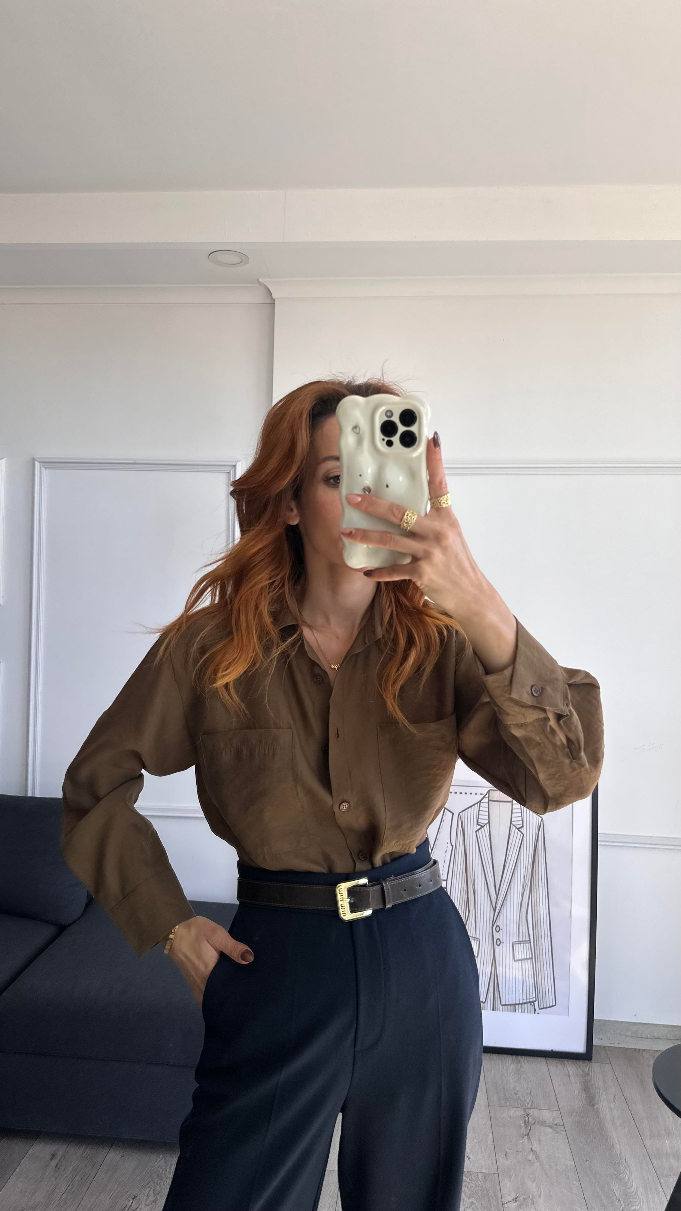 Tensel Kumaş Dökümlü Haki Gömlek (Bonng1)